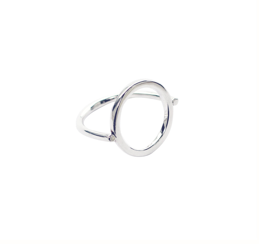 Dimensioner: Ringen er lavet med en 2 mm bred, firkantet økosilvercirkel monteret på en 2 mm tyk økosilver rund tråd. Cirklens diameter afhænger af ringens størrelse. Jo mindre ringens størrelse er, desto mindre bliver cirklen. På en størrelse 18 måler cirklen 1,9 cm i ydre diameter.