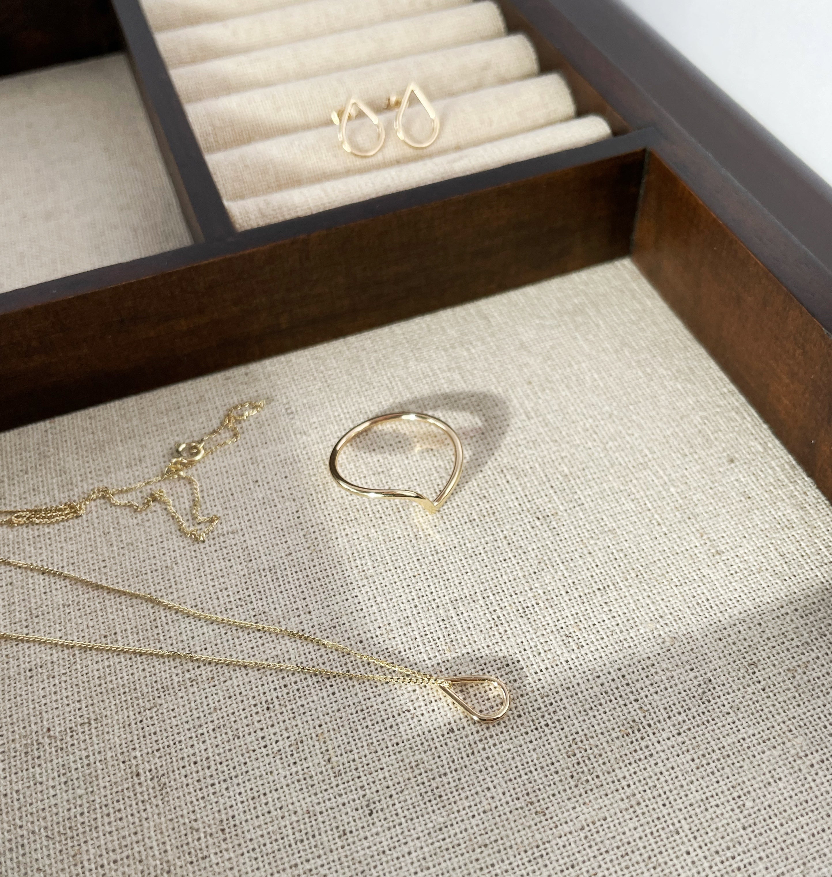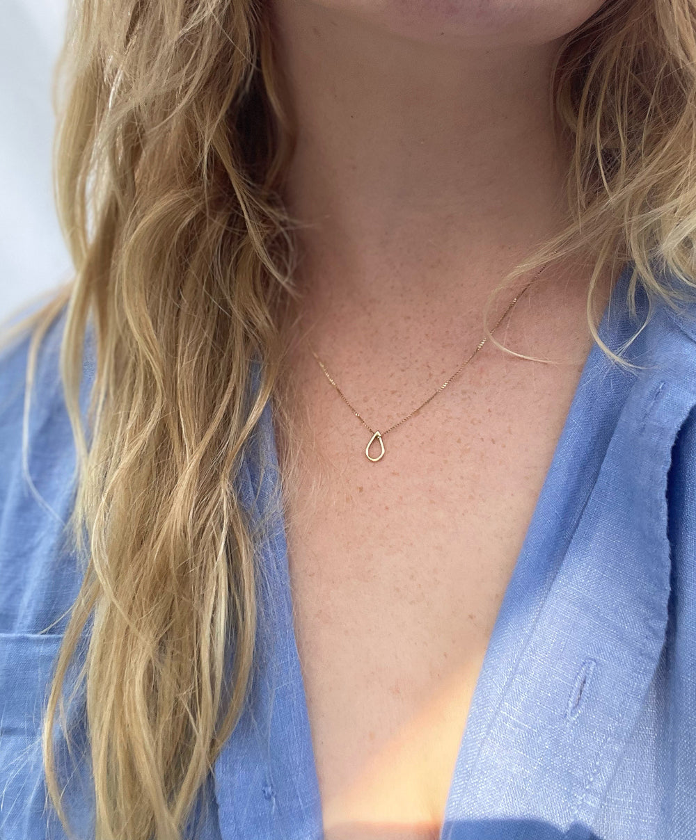 Inspired by the sunshine hitting little drops of fresh summer rain, gently resting on a lush bed of flower petals, this 9K yellow gold necklace lets your soul shine through with its adorable and cute little droplet shape. So cute, you can't help but smile. The perfect little detail to add a touch of elegance to your everyday outfit.